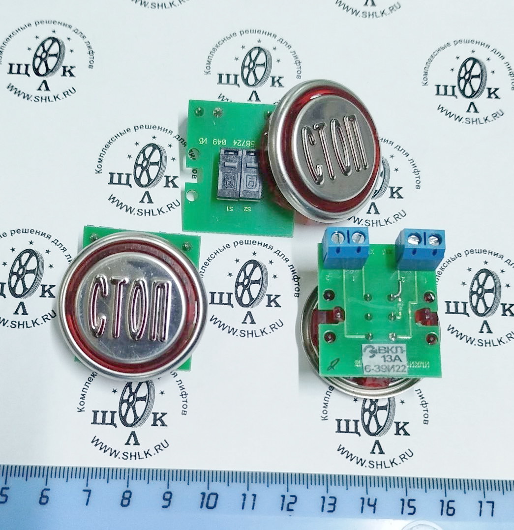Кнопка (выключатель кнопочный) ВКЛ 13А-6-39И22, "СТОП", на защелках, 2 микрика, 4 контакта